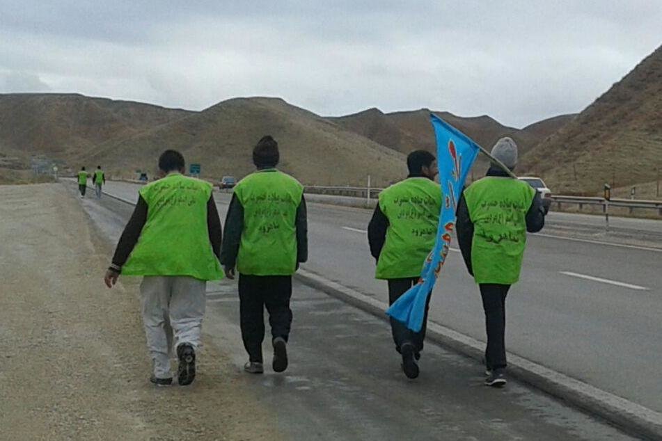 روزانه ۴۵ کیلومتر مسیر را با سوز و نوای یا رضا رضا گویان، پیش رفته اند در این میان شور و حالی در جاده عشق برپاست، ایستگاه های صلواتی در مسیر روستاهای بین راه با چای و غذای داغ از مهمانان پیشوای هشتم پذیرایی می کنند فردی از کاروان پاهای خود را قدری می مالد تا پس از لختی درنگ برای حرکت دوباره آماده باشد.