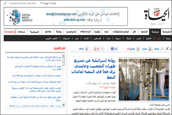 روزنامه الحیات چاپ لندن امروز در گزارشی به بازتاب اخبار مربوط به ایران در برخی منابع صهیونیستی پرداخته و می نویسد: در حالی که دو روزنامه اسرائیلی روز گذشته از افزایش سرعت غنی سازی اورانیوم از سوی ایران خبر دادند، تهران اعلام کرده که شکست مذاکرات در موضوع هسته ای به نفع هیچ کس نست.