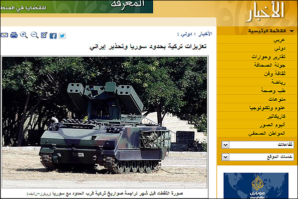 بنابر این گزارش، با افزایش نگرانی آنکارا درباره امنیت مناطق مرزی جنوبی این کشور، طی روزهای اخیر 20 دستگاه نفربر حامل نظامیان ترک، تعداد زیادی باتری های موشک و خودروهای زرهی در این مناطق مستقر شده اند. اینها جدیدترین اقدامات ترکیه در نقاط مرزی با سوریه بوده است.