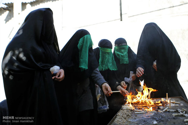 ۱۲ شمع نذری و قند از کیسهام باقیمانده بود باید آنها را نیز روشن میکردم، صدای نوحه لری زیبایی را از دور میشنیدم، جلوتر که رفتم متوجه منزلی شدم که در حال قربانی کردن گوسفند هستند، صدای صلوات از همهجا بلند بود، چه لحظات بهیادماندنی... این حال و هوا را دوست داشتم.