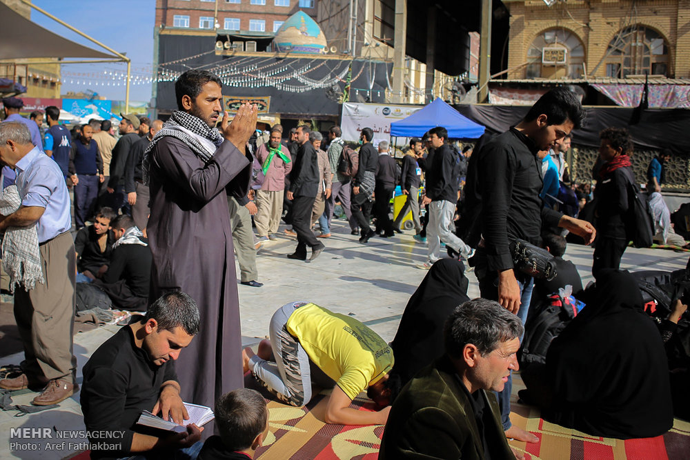 این روزها و شب‌ها نجف اشرف مملو از زائران اربعین حسینی(ع) است و از کیلومترها قبل از حرم مطهر امام علی(ع)، خودروها دیگر اجازه تردد ندارند و بسیاری از زائران با پای پیاده خود را به حرم می‌رسانند.