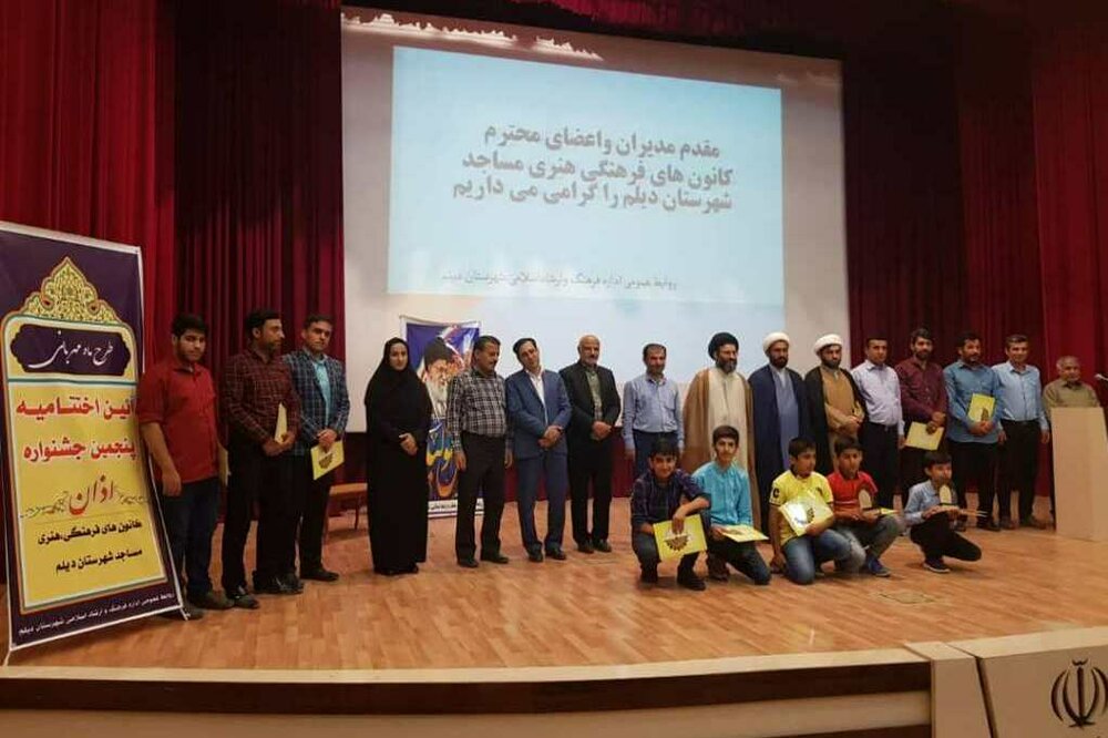 دیلم - پنجمین جشنواره اذان کانون های فرهنگی هنری مساجد شهرستان دیلم با حضور مسئولان، جمعی از موذنین و مدیران کانون‌های فرهنگی مساجد در مجتمع فرهنگی هنری پیامبر اعظم (ص) این شهر برگزار شد.