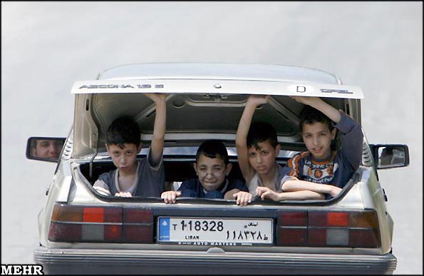 "هجرت". لبنان. بچه‌های فلسطینی در حالی که در صندوق عقب یک خودرو نشسته‌اند از اردوگاه پناهندگان نهر البارد می‌گریزند تا به اردوگاه پناهندگان بداوی در شمال لبنان بروند. جمال سیدی ـ رویترز