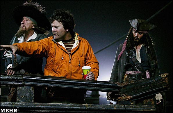 گور وربینسکی، کارگردان "دزدان دریایی کارائیب: در انتهای دنیا"، همراه جانی دپ و جفری راش دیده می‌شود. این فیلم از دیروز در آمریکای شمالی اکران شده است.