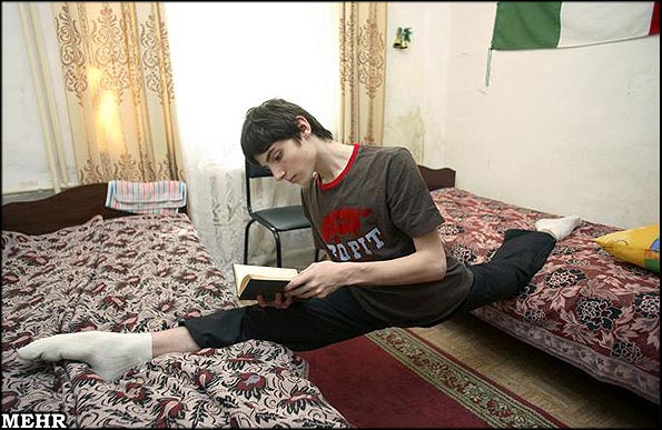 "تقسیم وظایف". کراسنویارسک، صربستان. یک دانش‌آموز مدرسه باله در حال تمرین مطالعه می‌کند.