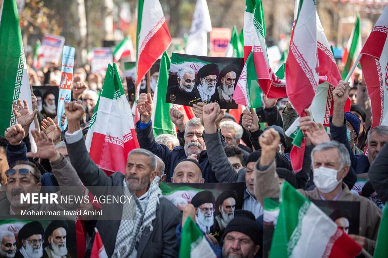 امروز ملت بازهم در تجمعهایی در سراسر کشور اعلام کرد که مردم بزرگ ایران اسلامی همچنان در صف اول دفاع از ایران و انقلاب حضور دارند.