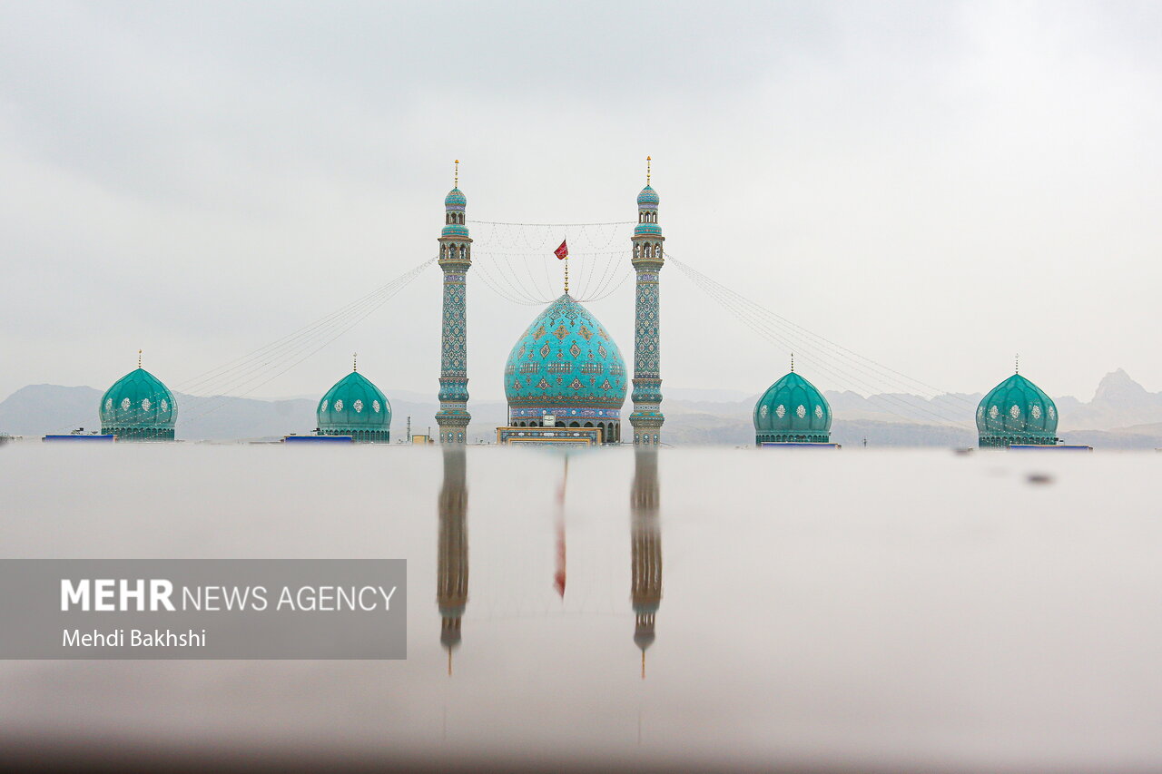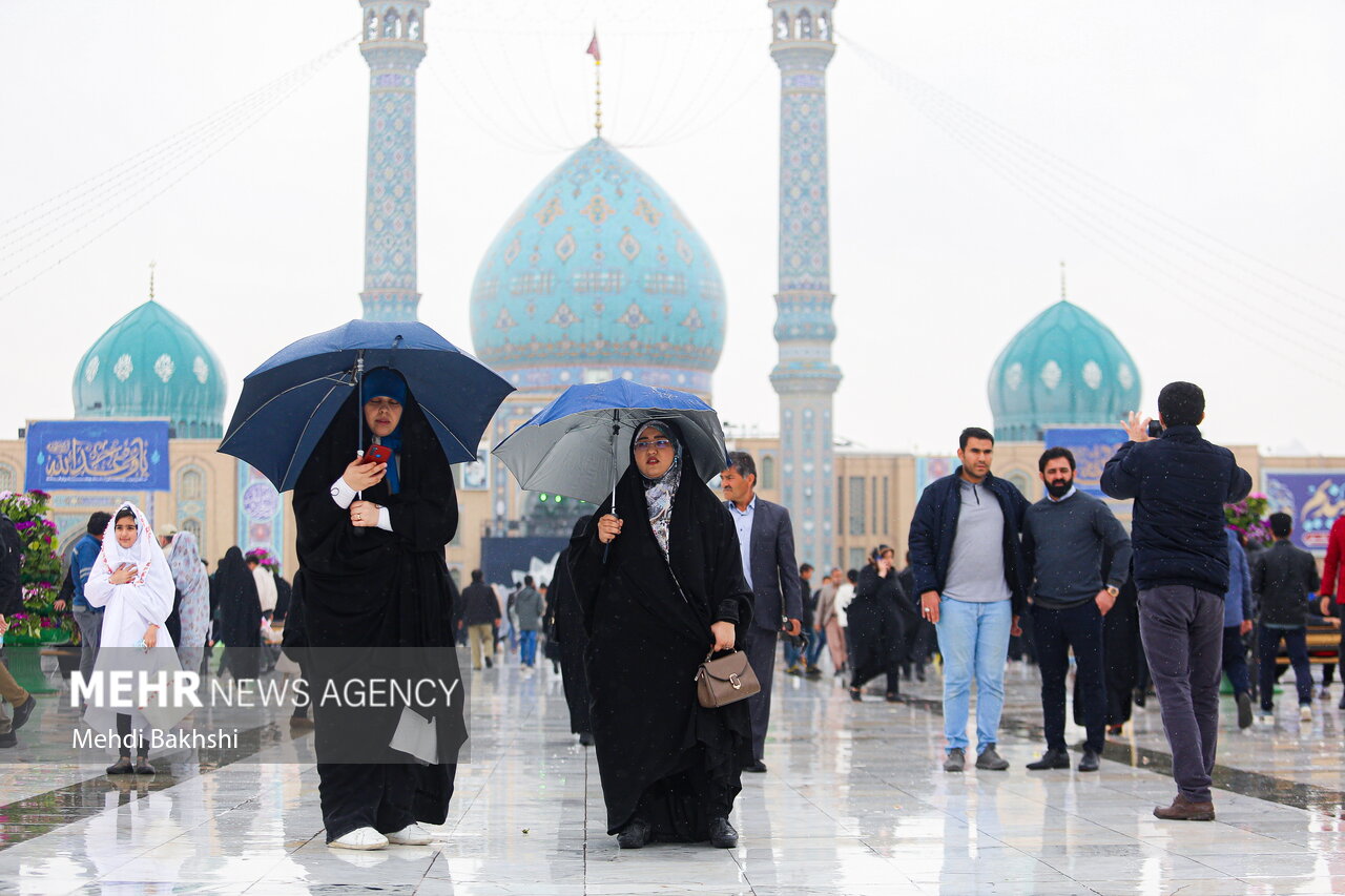 ۱۶:۲۲ عکس / حال و هوای بارانی مسجد جمکران در نیمه شعبان