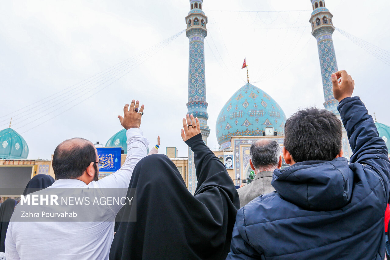 در این مراسم پس از نورباران آسمان مسجد مقدس جمکران، زائران در فضایی مملو از شادی و شعف، ندای لبیک یا مهدی (عج) سر دادند و برای فرج آن حضرت دست به دعا برداشتند.