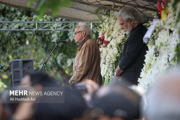پژمان بازغی رئیس هیات مدیره انجمن بازیگران خانه سینما نیز روی صحنه رفت و گفت: برای بدرود با هنرمندی آمدیم که بر دستها و دوش ما که نه بر قلبمان حمل میشود.