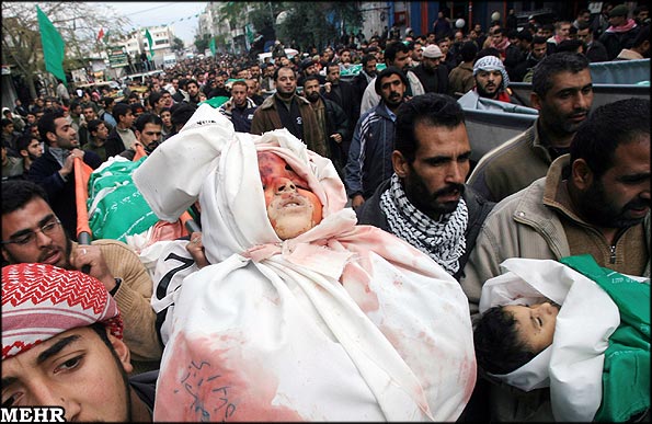 غزه- خبرگزاری مهر: کشتار غیرنظامیان و بویژه کودکان در نوار غزه همچنان از سوی رژیم صهیونیستی با شدت تمام دنبال می شود. تصاویر اختصاصی مهر از تشییع پیکر این شهدا که صبح امروز در غزه برگزار شده خود گواه مستندی بر ماهیت جنایتکارانه و ضد بشری رژیم صهیونیستی است.