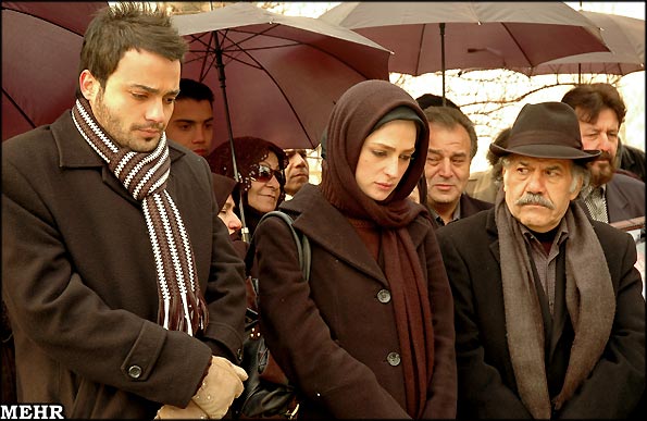 سیروس ابراهیمزاده، عسل بدیعی و مهدی سلوکی در صحنهای از فیلم "آبی گاهی آسمان"