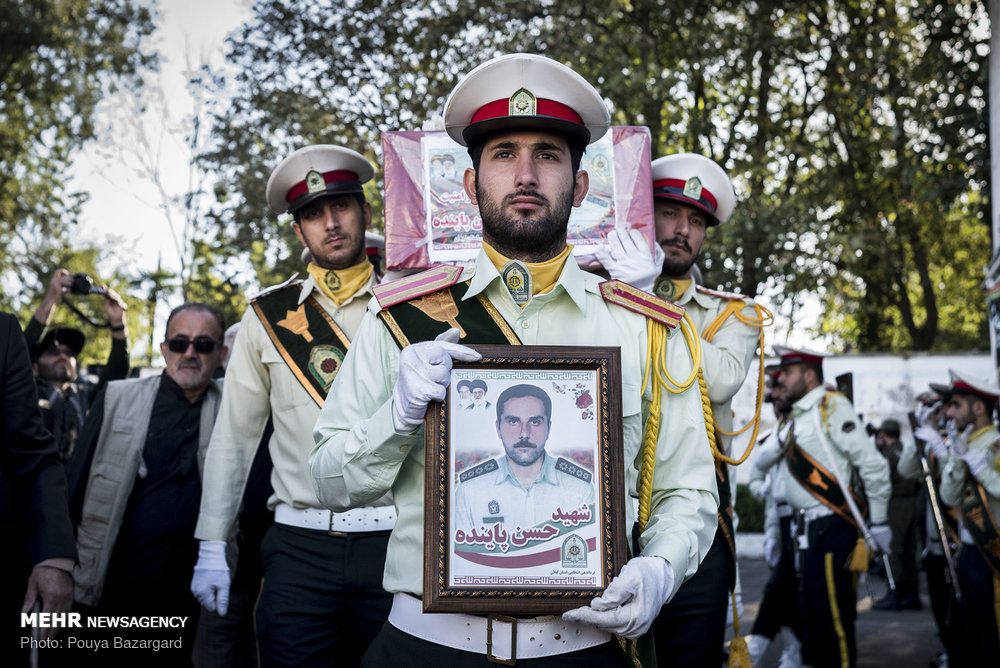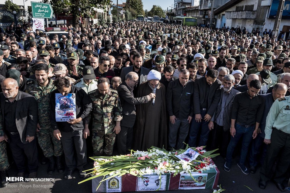 مراسم تشییع پیکر شهید نظم و امنیت سروان حسن پاینده، دوشنبه ۷ آبان ۱۳۹۷ از سپاه ناحیه مرکزی رشت (پل عراق) به سمت میدان فرهنگ برگزار شد.