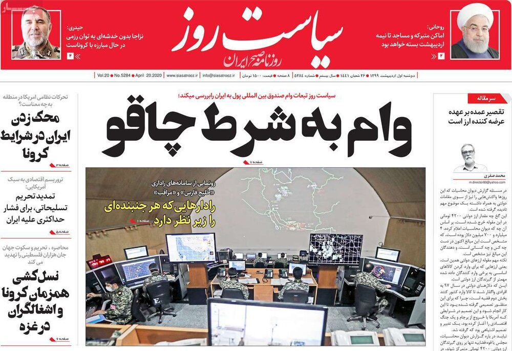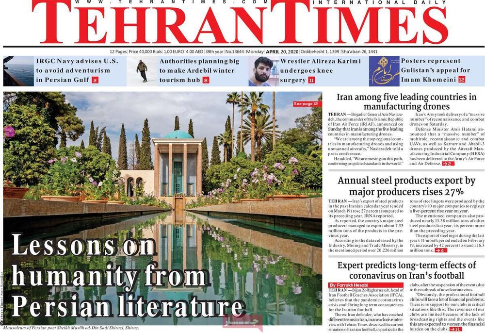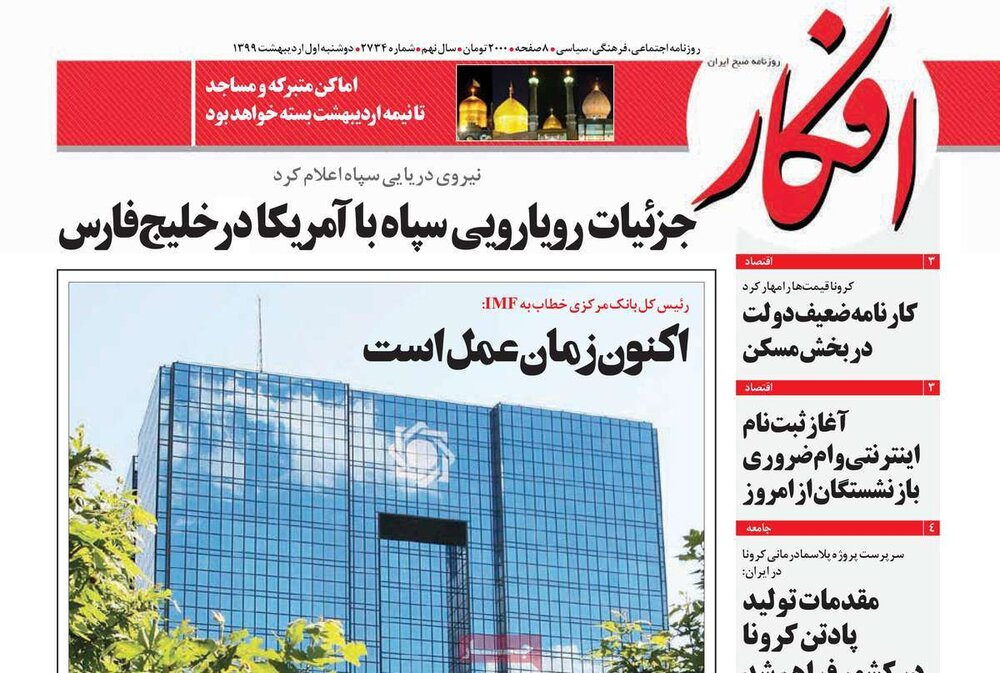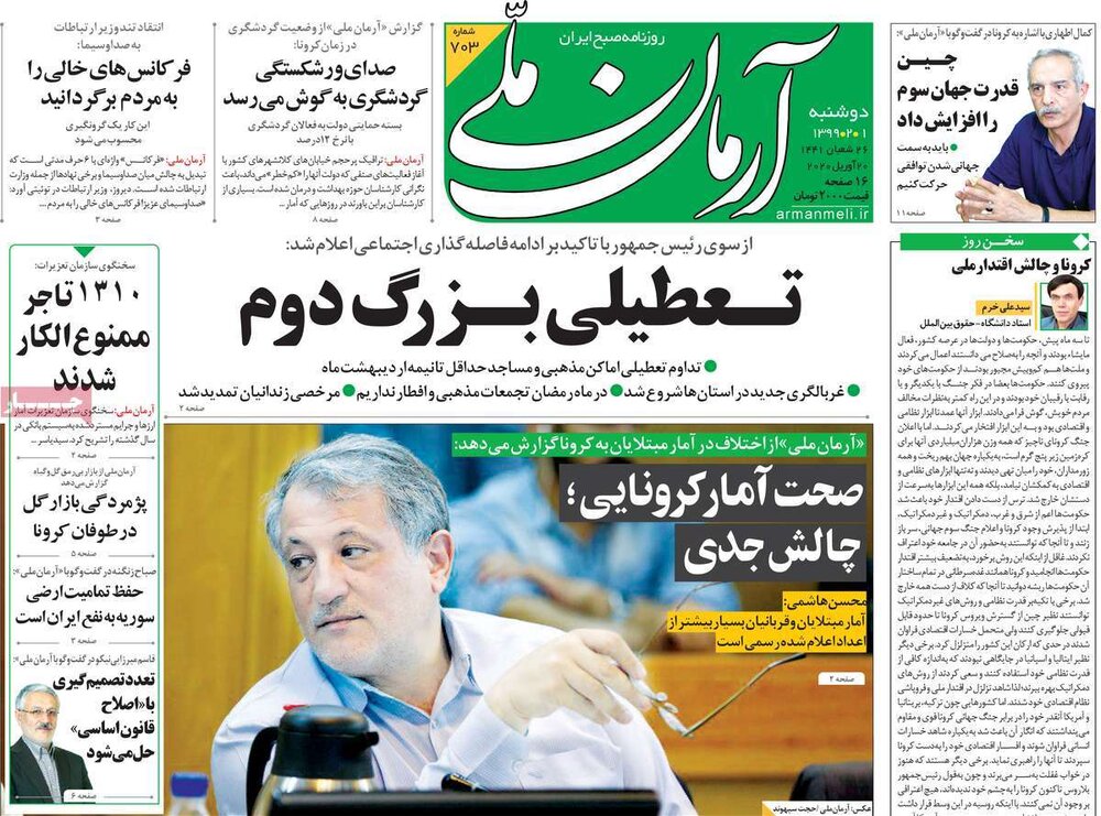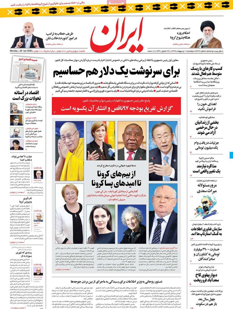 مجله مهر دکه روزنامه ۱ اردیبهشت ۱۳۹۹ - ۰۸:۴۴ دریافت تصاویر روزنامههای صبح دوشنبه ۱ اردیبهشت ۹۹ برچسبها صفحه اول روزنامه ها دکه روزنامه مطبوعات ایران