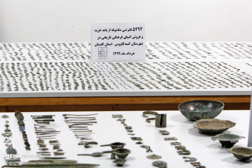 مأموران پلیس آگاهی گنبدکاووس پس از یک سری اقدامات اطلاعاتی موفق به شناسایی قاچاقچی حرفهای عتیقه و محل نگهداری اشیای تاریخی در یک منزل مسکونی شدند. در بازرسی از محل این فرد انواع اشیای تاریخی شامل پنج هزار و ۱۰۲ عدد سکههای مربوط به دوره اشکانی و ۲۹۱ عدد ابزار یراق مربوط به عصر آهن و ۲۲ عدد انواع ظروف عتیقه کشف شد.
