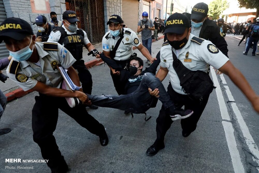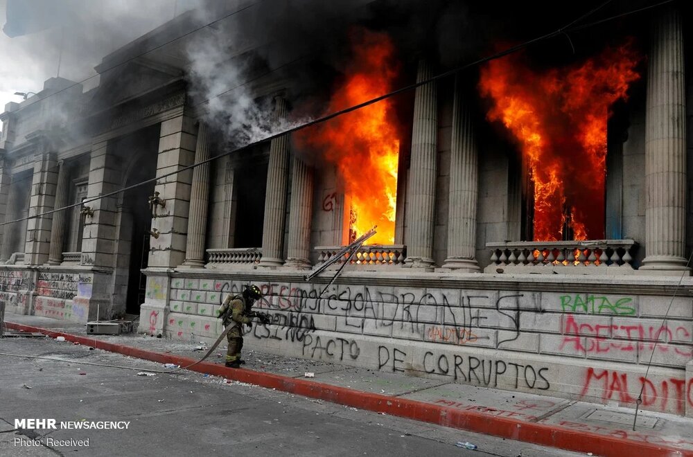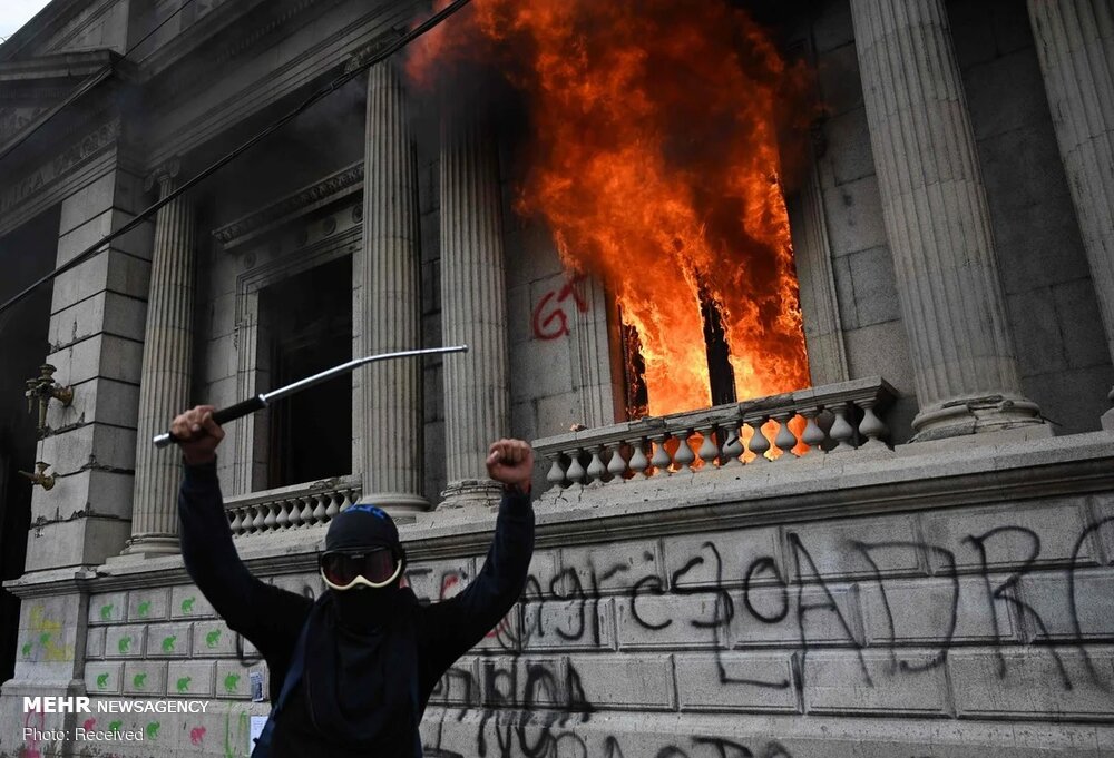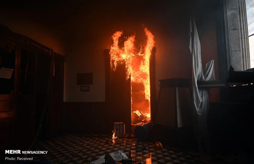 صدها معترض وارد ساختمان پارلمان گوآتمالا شده و بخشهایی از آن را در میان اعتراضات علیه رئیس جمهوری و پارلمان در تأیید بودجه مناقشه برانگیزی که هزینههای بخش سلامت و آموزش را قطع میکند، به آتش کشیدند.
