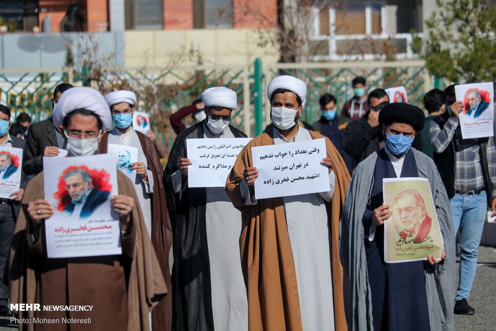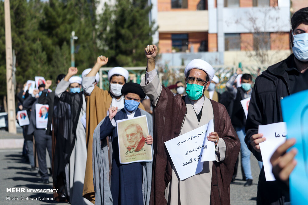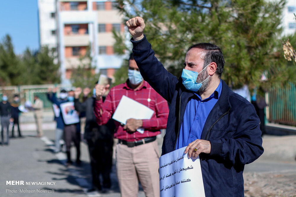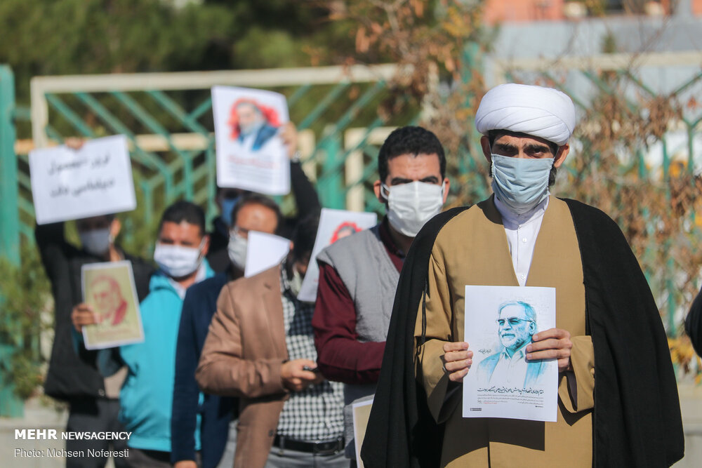 جمعی ازطلاب ودانشجویان شهرستان بیرجند در اعتراض به ترور شهید محسن فخریزاده ازدانشمندان هستهای کشور امروز یکشنبه به صورت خودجوش در مقابل استانداری خراسان جنوبی تجمعی اعتراض آمیز برپا کردند.