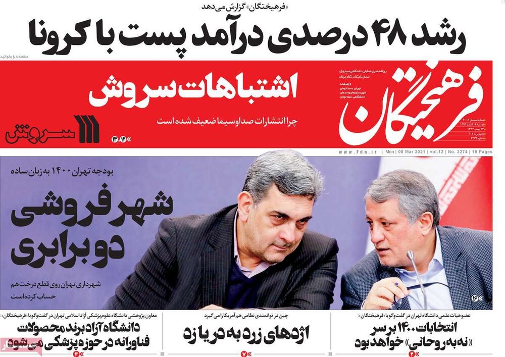 مجله مهر دکه روزنامه ۱۸ اسفند ۱۳۹۹ - ۰۹:۳۱ دریافت تصاویر روزنامههای صبح دوشنبه ۱۸ اسفند ۹۹ برچسبها صفحه اول روزنامه ها دکه روزنامه مطبوعات ایران