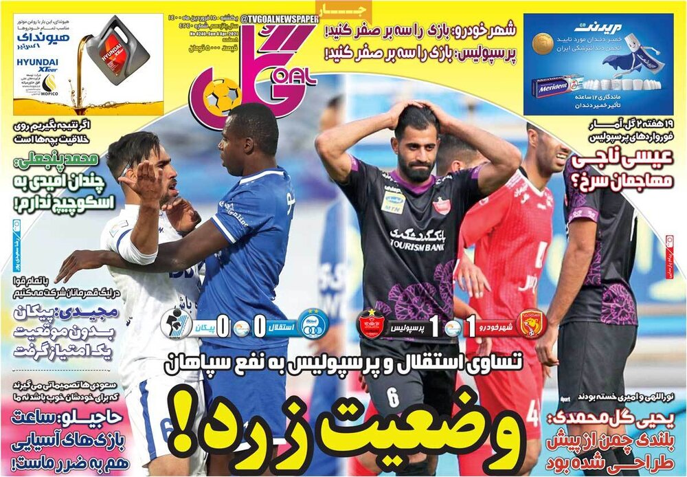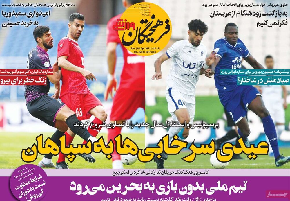 مجله مهر دکه روزنامه ۱۵ فروردین ۱۴۰۰ - ۰۹:۳۱ دریافت تصاویر روزنامههای ورزشی یکشنبه ۱۵ فروردین ۱۴۰۰ برچسبها صفحه اول روزنامه ها دکه روزنامه مطبوعات ایران