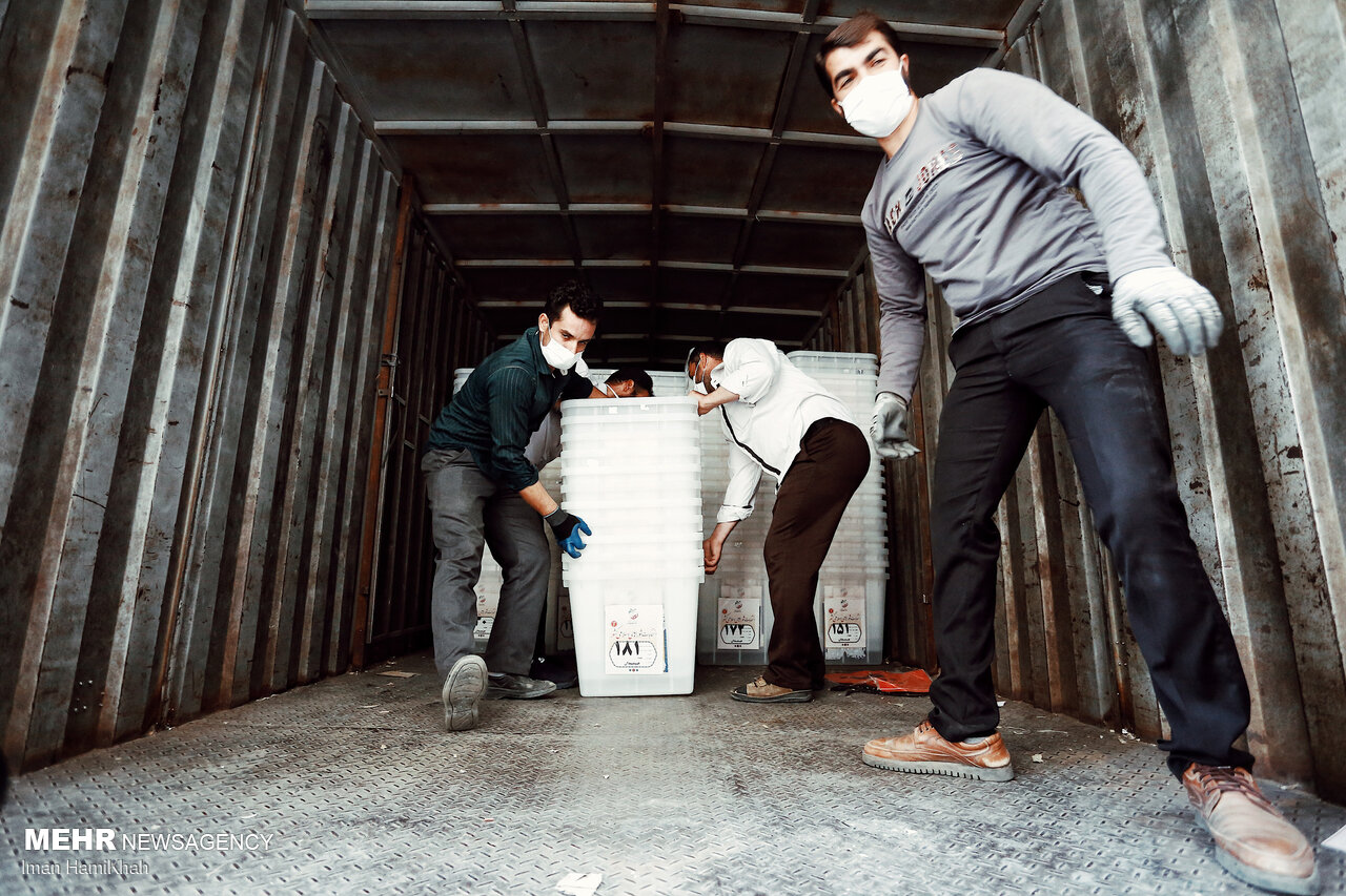 انتقال اقلام انتخاباتی از جمله تعرفه و صندوق‌های رای از محل قرنطینه فرمانداری به محل توزیع صبح امروز پنجشنبه در همدان انجام شد.