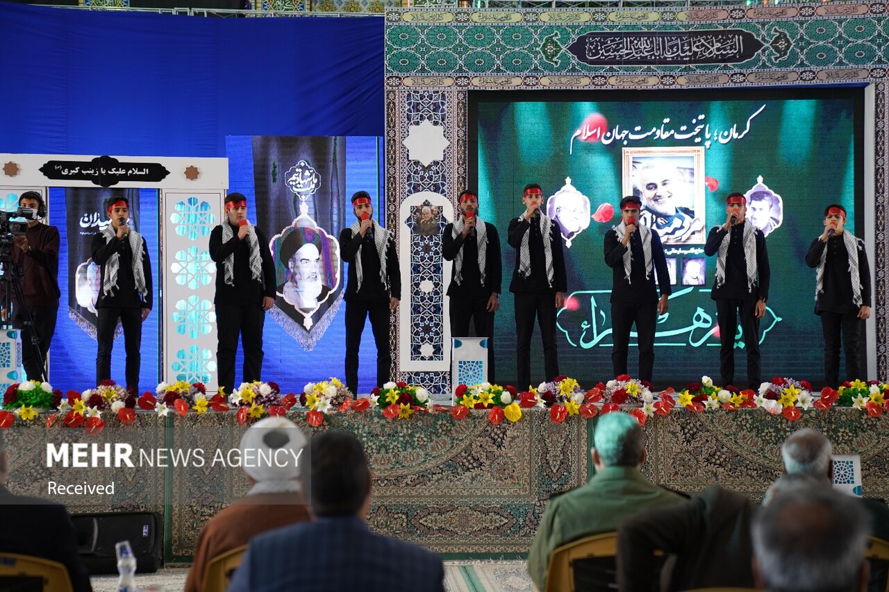 اجلاسیه سراسری دومین سالگرد شهادت حاج قاسم صبح امروز پنجشنبه ۱۶ دی ماه همزمان با سالروز شهادت حضرت زهرا (س) در مصلی بزرگ امام علی (ع) شهر کرمان برگزار شد.