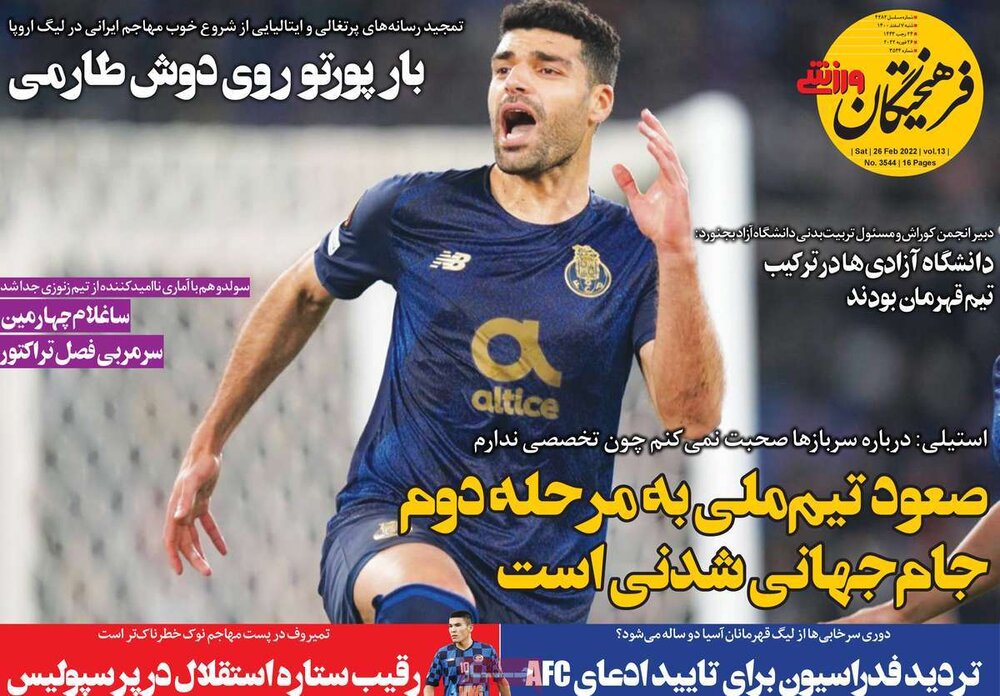 مجله مهر دکه روزنامه ۷ اسفند ۱۴۰۰ - ۰۹:۲۶ دریافت تصاویر روزنامههای ورزشی شنبه ۷ اسفند ۱۴۰۰ روزنامههای ورزشی شنبه ۷ اسفند ۱۴۰۰ برچسبها صفحه اول روزنامه ها دکه روزنامه صفحه اول روزنامه های ورزشی