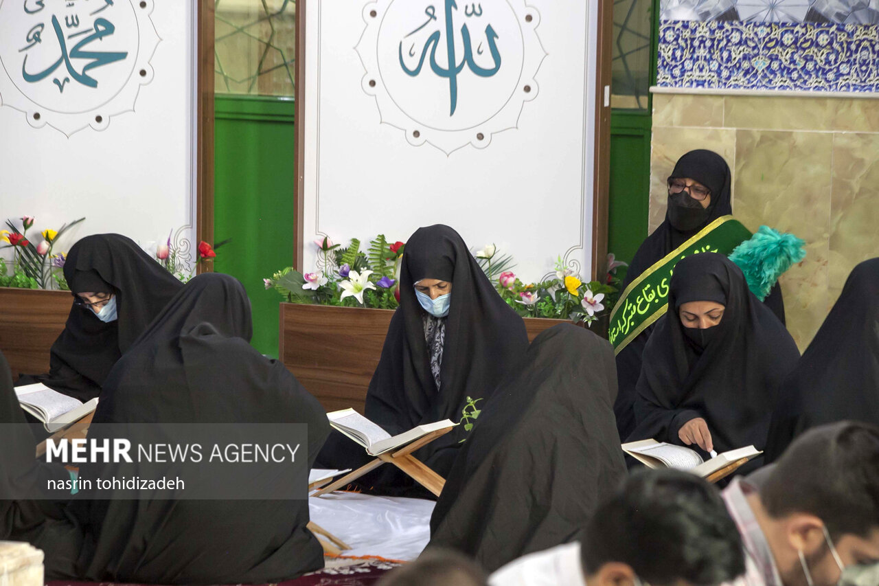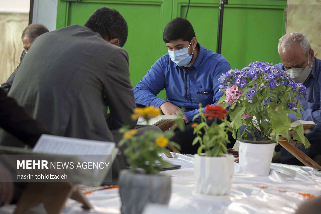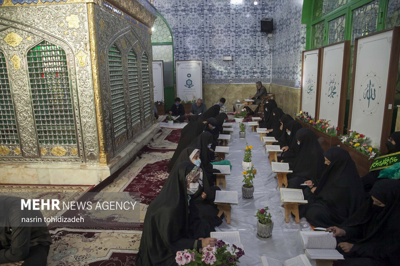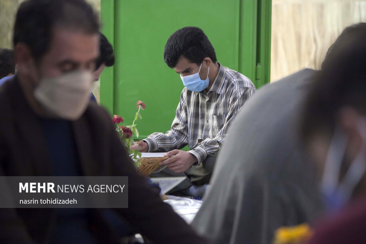 آیین معنوی جزءخوانی قرآن با حضور روزهداران در امامزاده ابراهیم شهر کرمانشاه در حال برگزاری است.