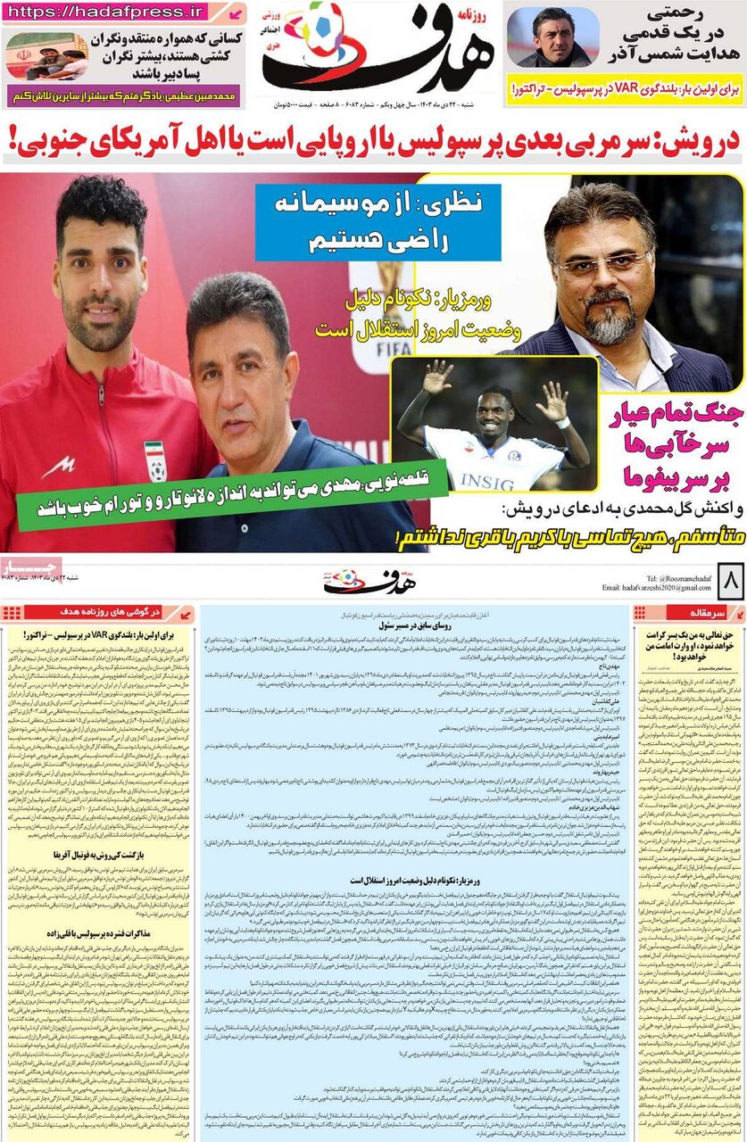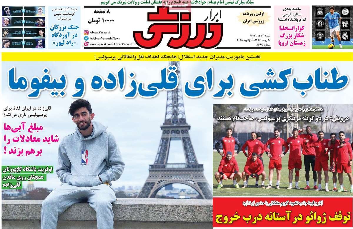 روزنامههای ورزشی شنبه ۲۲ دی با تمرکز بر انتخابات سرنوشتساز فدراسیون فوتبال و تلاشهای استقلال و پرسپولیس برای جذب علی قلیزاده منتشر شدند.