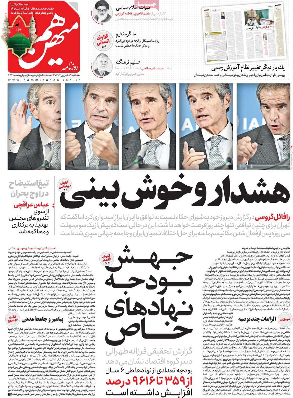 مجله مهر دکه روزنامه ۱۸ شهریور ۱۴۰۴ - ۰۸:۵۴ دریافت تصاویر روزنامههای صبح سهشنبه ۱۸ شهریور ۱۴۰۴ روزنامههای امروز از امید آژانس برای توافق ایران در روزهای آتی و کنفرانس بینالمللی وحدت اسلامی نوشتند. برچسبها مطبوعات ایران صفحه اول روزنامه ها دکه روزنامه