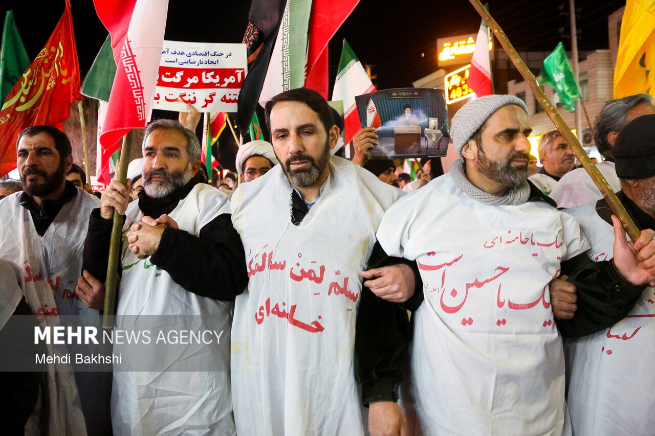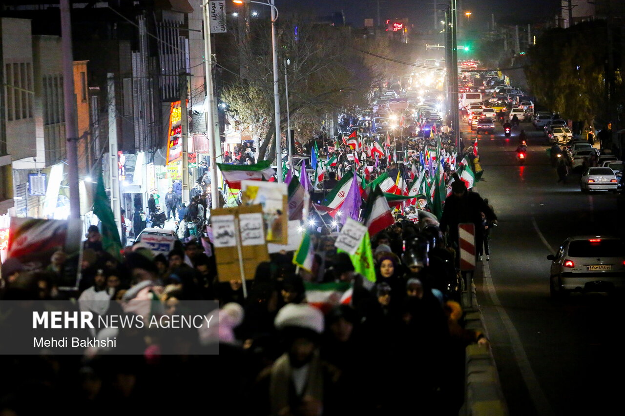 راهپیمایی شبانه مردم ولایتمدار و انقلابی قم علیه اقدامات تروریستی اغتشاشگران شامگاه یکشنبه ۲۱ دی مله ۱۴۰۴ از امامزاده سید معصوم تا میدان توحید قم برگزار شد.