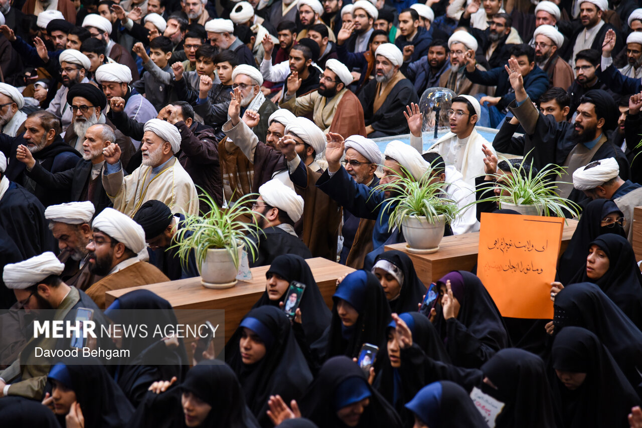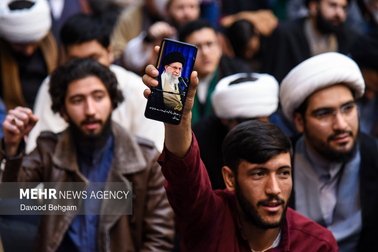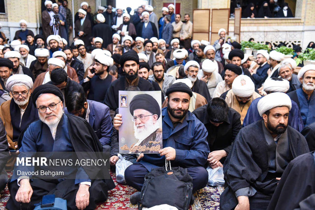اجتماع حوزویان مشهد با حضور خانوادههای شهدای حوادث اخیر و با سخنرانی آیت الله علم الهدی نماینده ولیفقیه در خراسان رضوی، صبح سهشنبه ۱۴ بهمنماه در مدرسه علمیه عالی نواب برگزار شد.