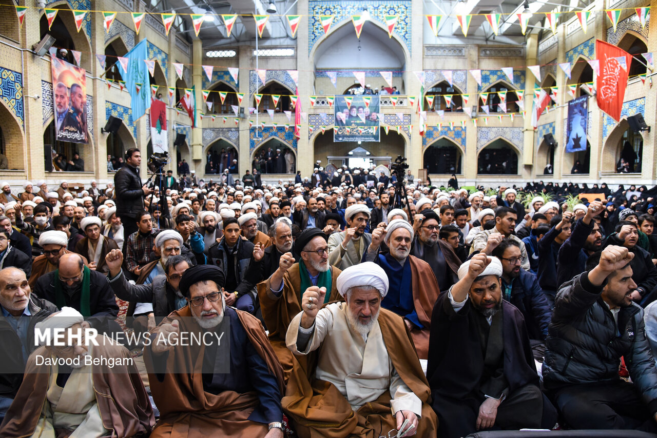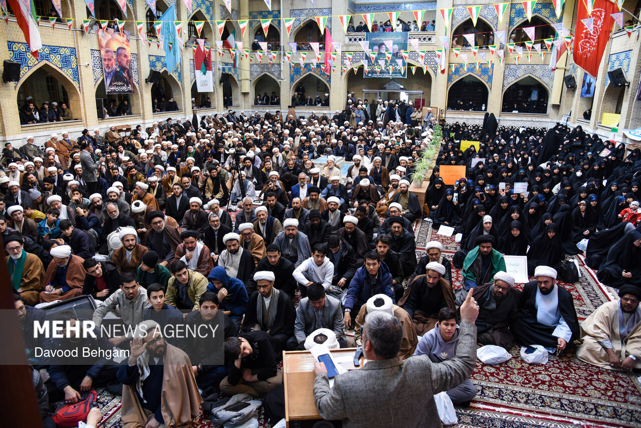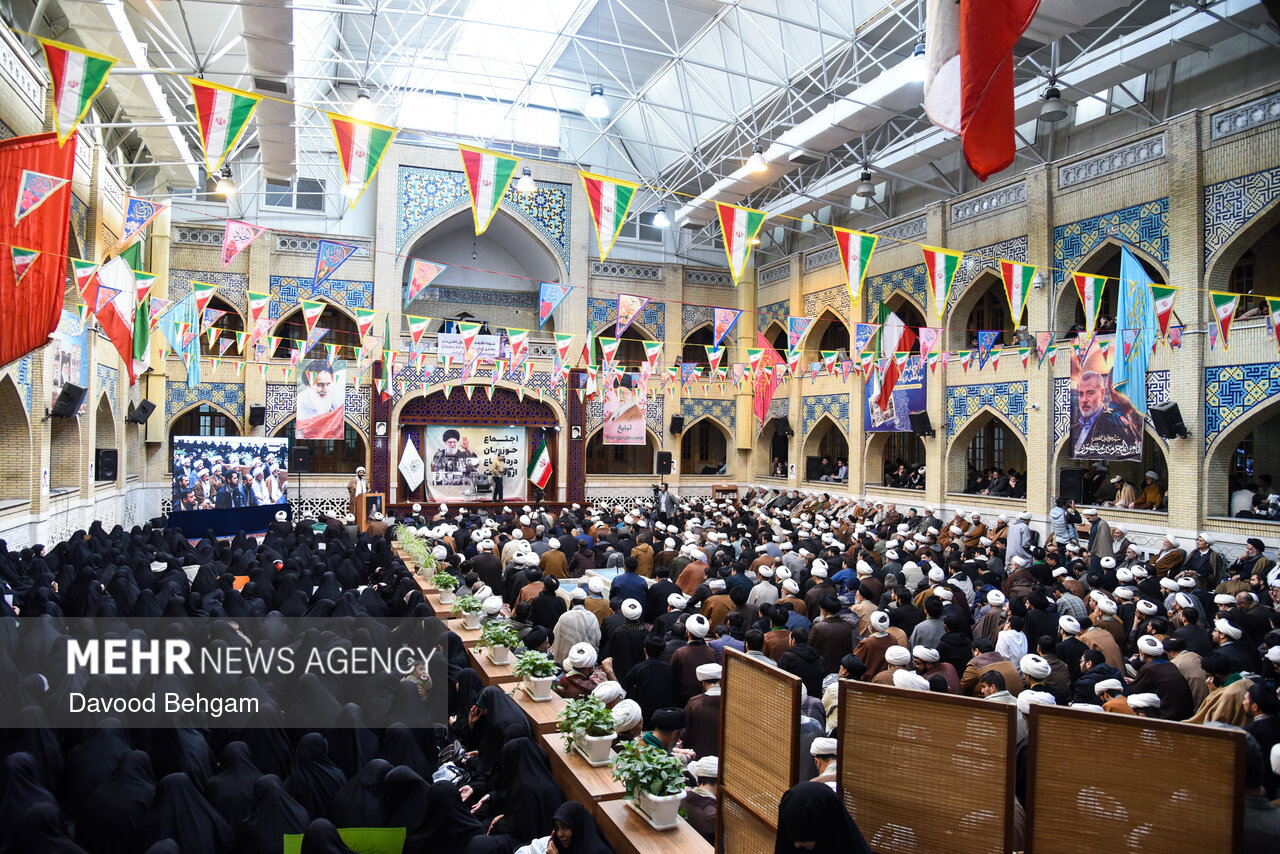 اجتماع حوزویان مشهد با حضور خانوادههای شهدای حوادث اخیر و با سخنرانی آیت الله علم الهدی نماینده ولیفقیه در خراسان رضوی، صبح سهشنبه ۱۴ بهمنماه در مدرسه علمیه عالی نواب برگزار شد.