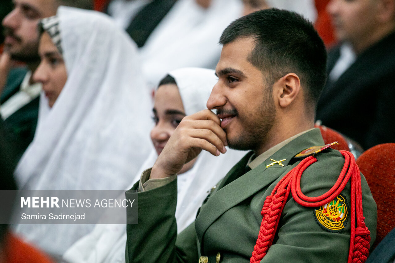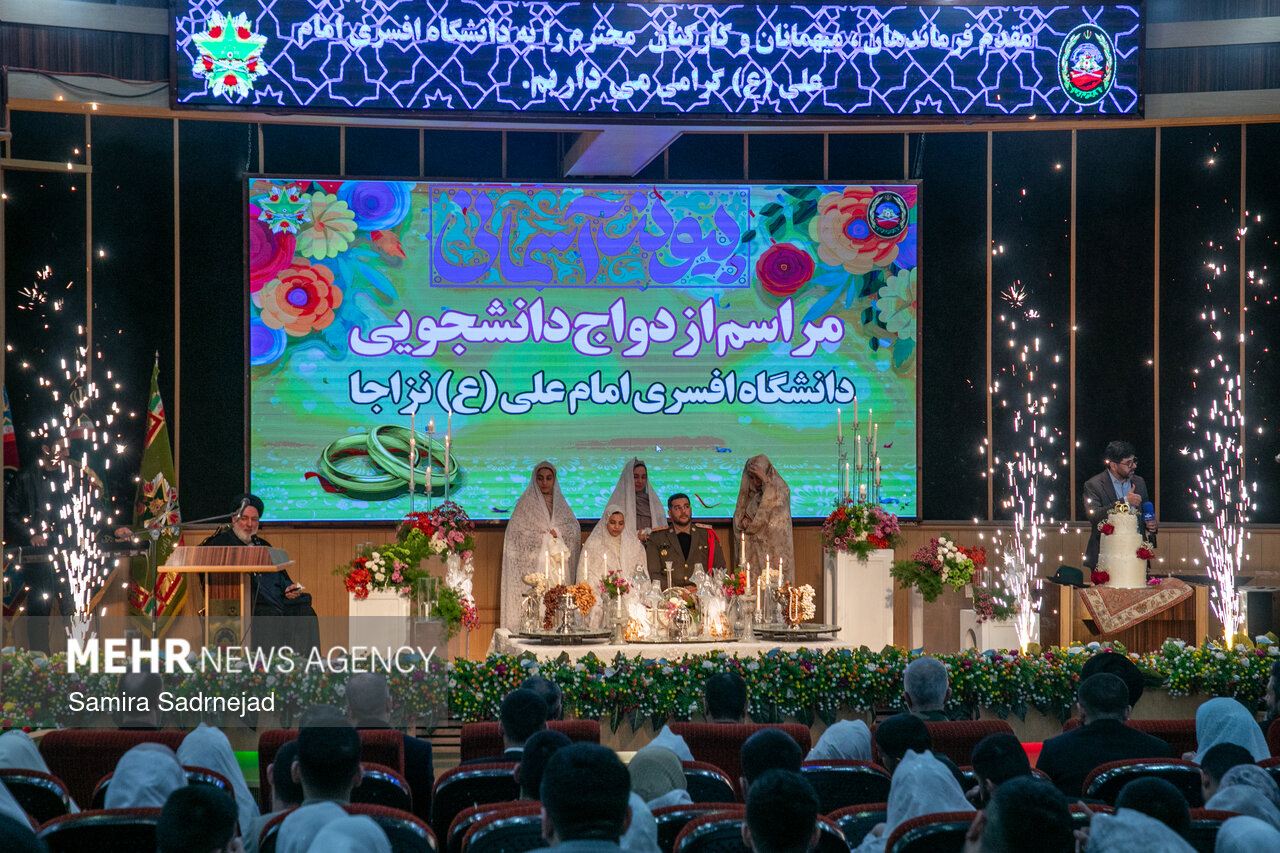مراسم جشن ازدواج ۱۰۰ نفر از دانشجویان دانشگاه افسری امام علی (علیهالسلام) به مناسبت ولادت با سعادت امام زمان (عجل الله تعالی فرجه الشریف) چهارشنبه ۱۵ بهمن ماه ۱۴۰۴، با حضور امیر علی جهانشاهی فرمانده نیروی زمینی ارتش و امیر سرتیپ دوم علی مهدوی فرمانده دانشگاه افسری امام علی (علیه السلام) برگزار شد.