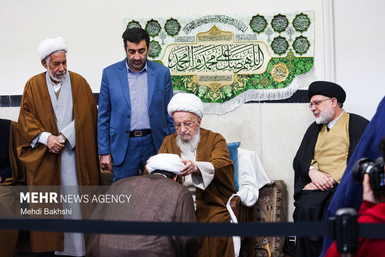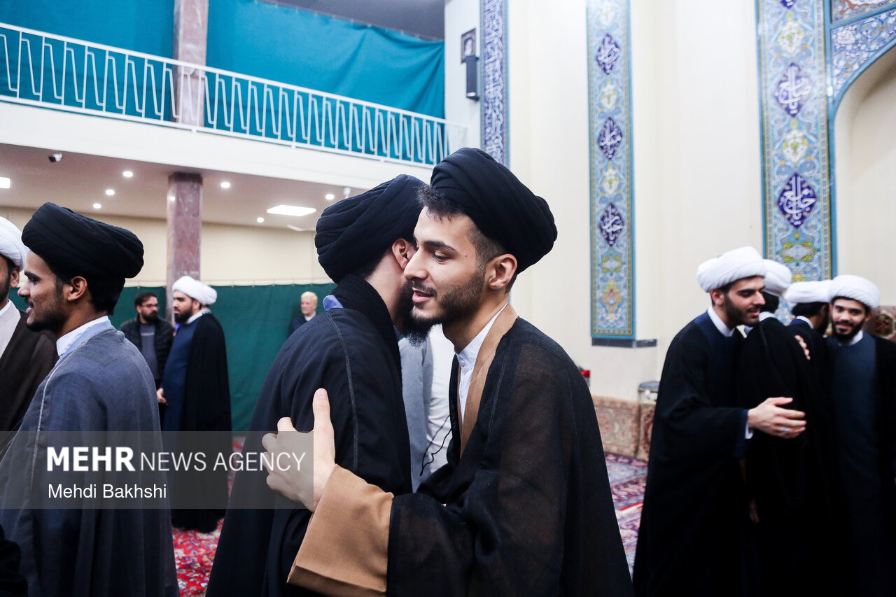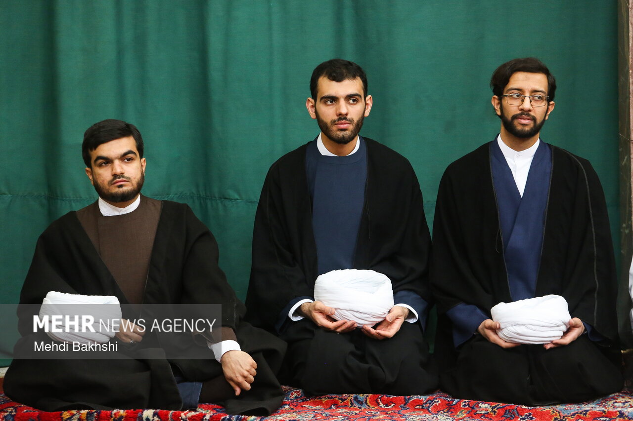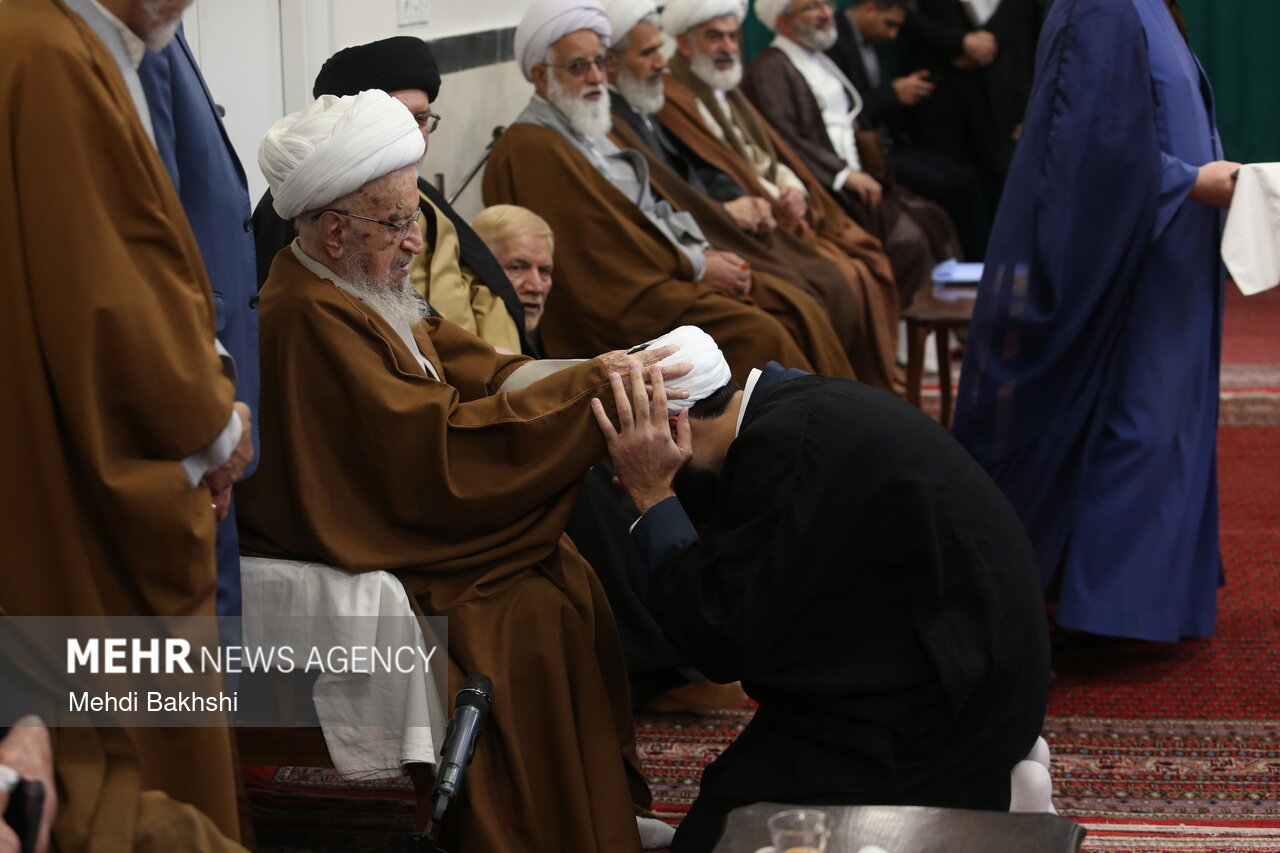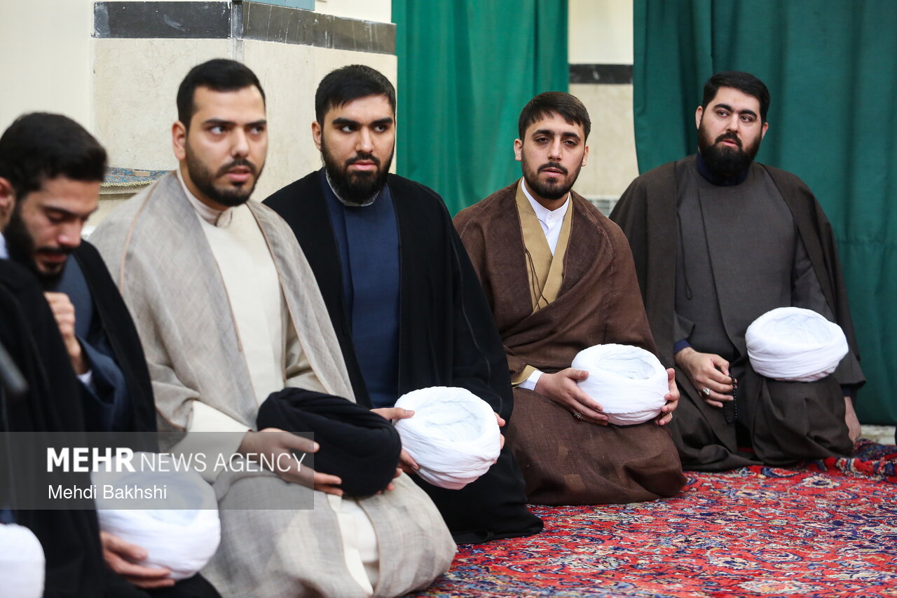 جمعی از طلاب حوزه علمیه قم در سالروز نیمه شعبان توسط آیت الله مکارم شیرازی از مراجع عظام تقلید ملبس به لباس روحانیت شدند.