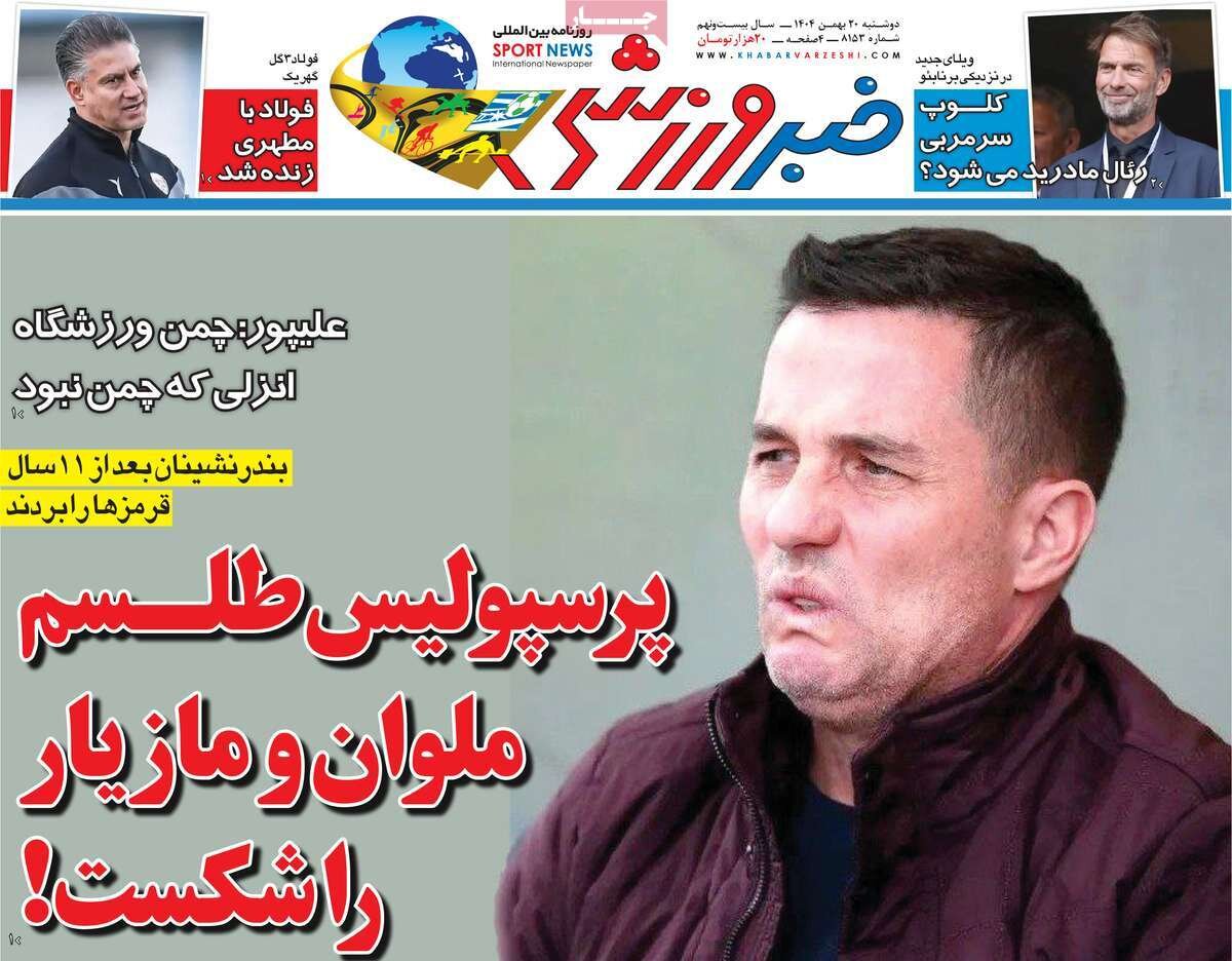 مجله مهر دکه روزنامه ۲۰ بهمن ۱۴۰۴ - ۱۰:۱۰ دریافت تصاویر روزنامههای ورزشی دوشنبه ۲۰ بهمن ۱۴۰۴ روزنامه های ورزشی امروز درباره شکست تیم فوتبال پرسپولیس دربرابر ملوان بندر انزلی نوشتند. برچسبها صفحه اول روزنامه های ورزشی روزنامه های ورزشی امروز دکه روزنامه صفحه اول روزنامه ها