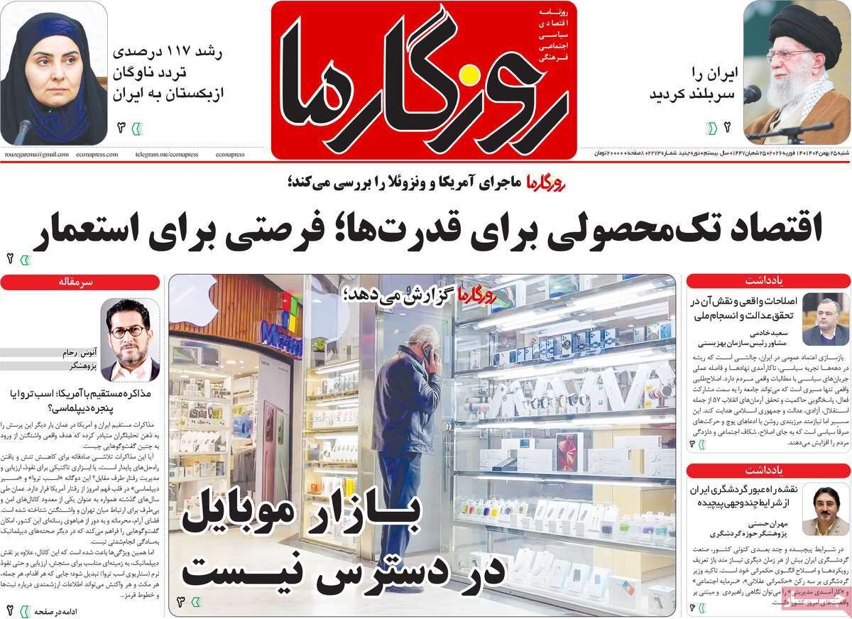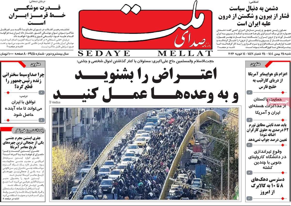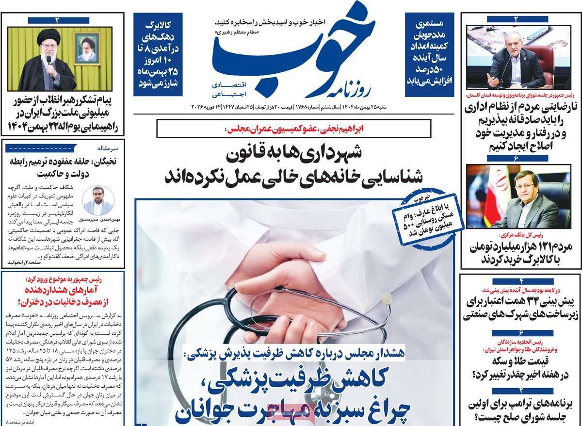 مجله مهر دکه روزنامه ۲۵ بهمن ۱۴۰۴ - ۰۹:۳۲ دریافت تصاویر روزنامههای صبح شنبه ۲۵ بهمن ۱۴۰۴ صفحه اول روزنامههای امروز به حماسهسازی مردم در ۲۲ بهمن پرداختند. برچسبها صفحه اول روزنامه ها دکه روزنامه روزنامه های امروز