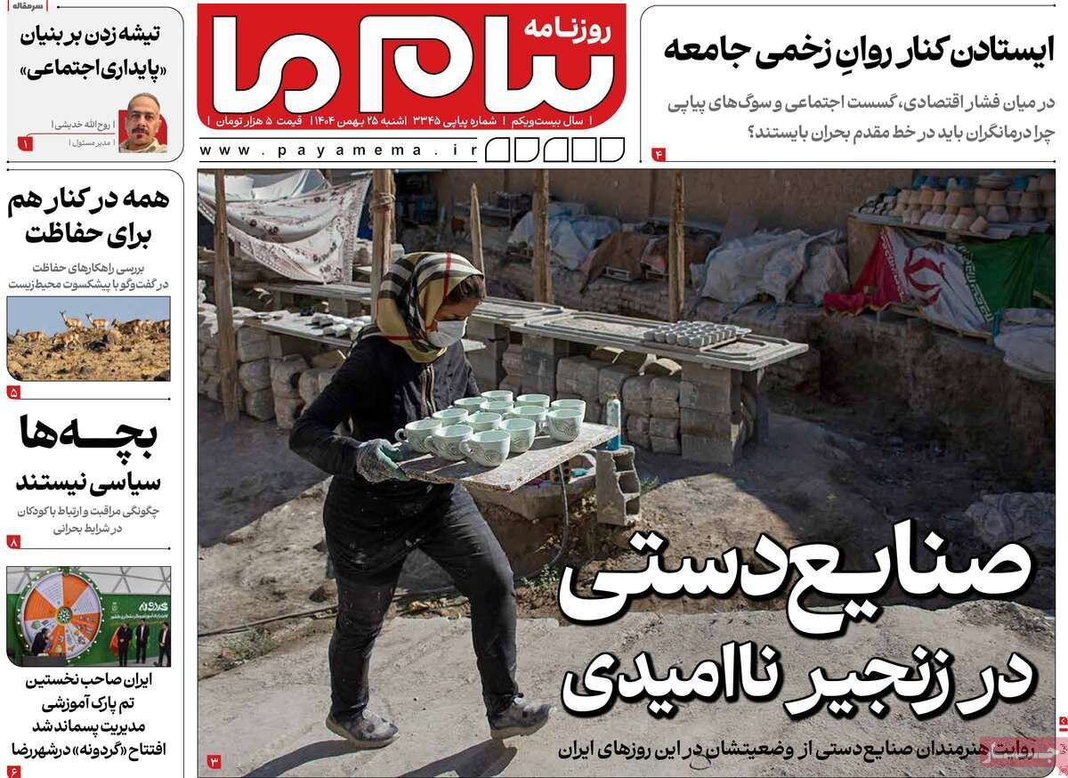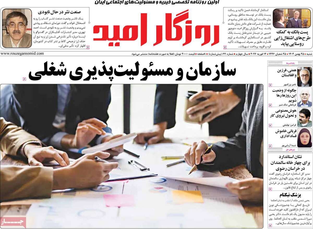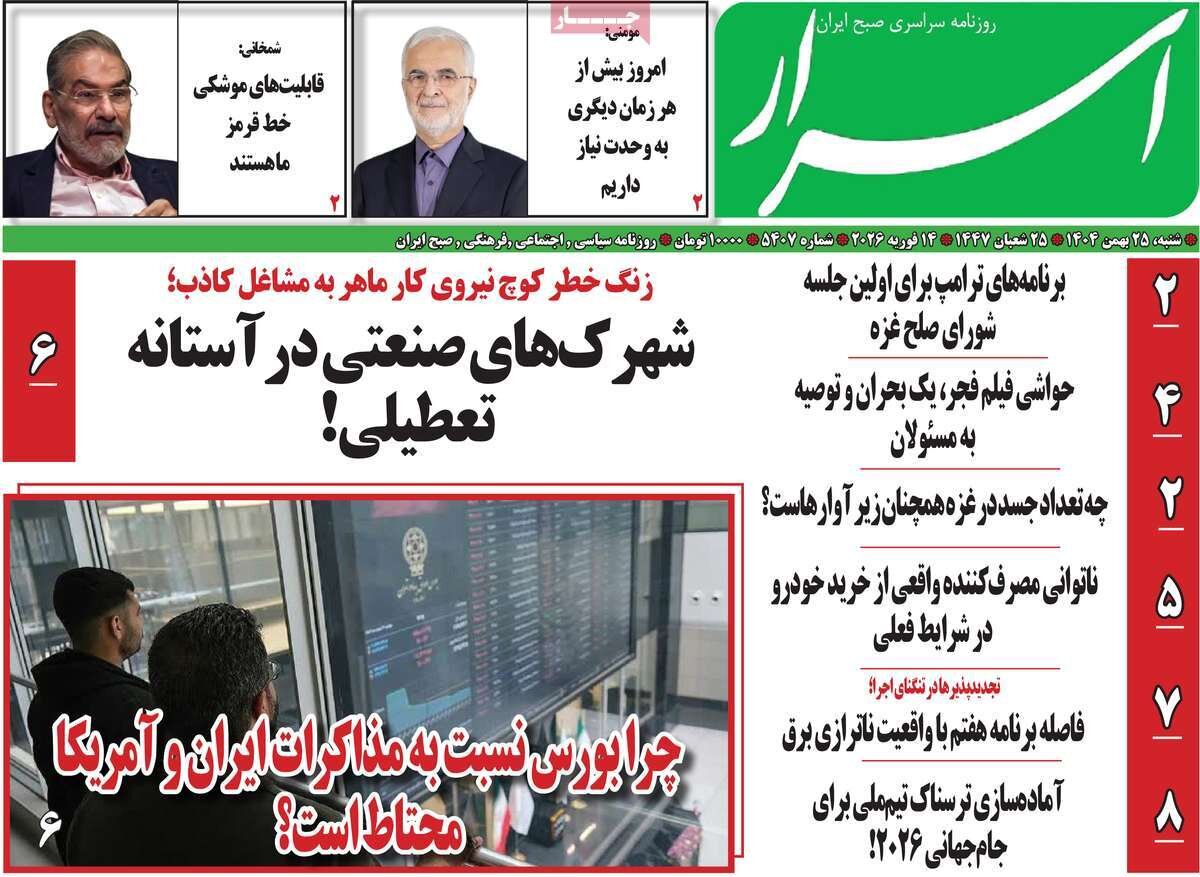 مجله مهر دکه روزنامه ۲۵ بهمن ۱۴۰۴ - ۰۹:۳۲ دریافت تصاویر روزنامههای صبح شنبه ۲۵ بهمن ۱۴۰۴ صفحه اول روزنامههای امروز به حماسهسازی مردم در ۲۲ بهمن پرداختند. برچسبها صفحه اول روزنامه ها دکه روزنامه روزنامه های امروز