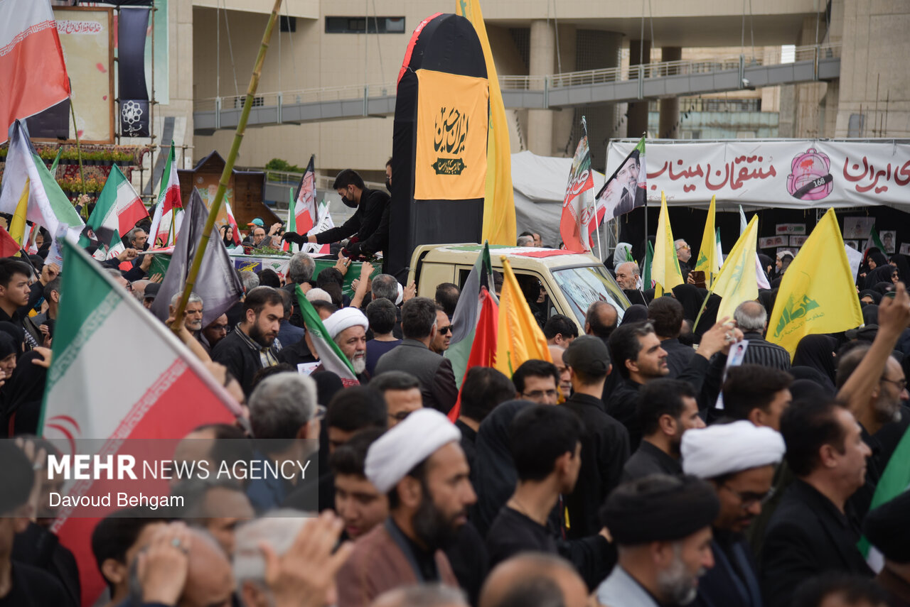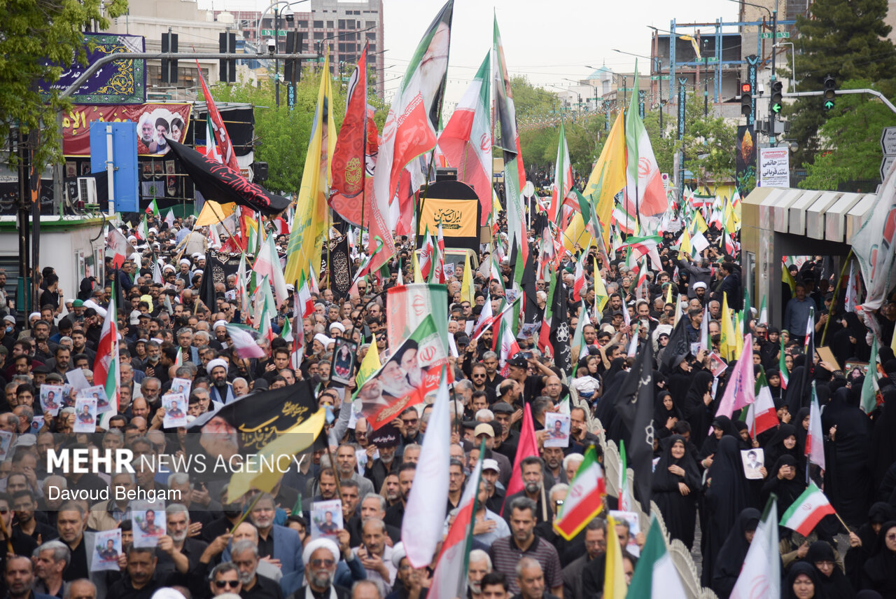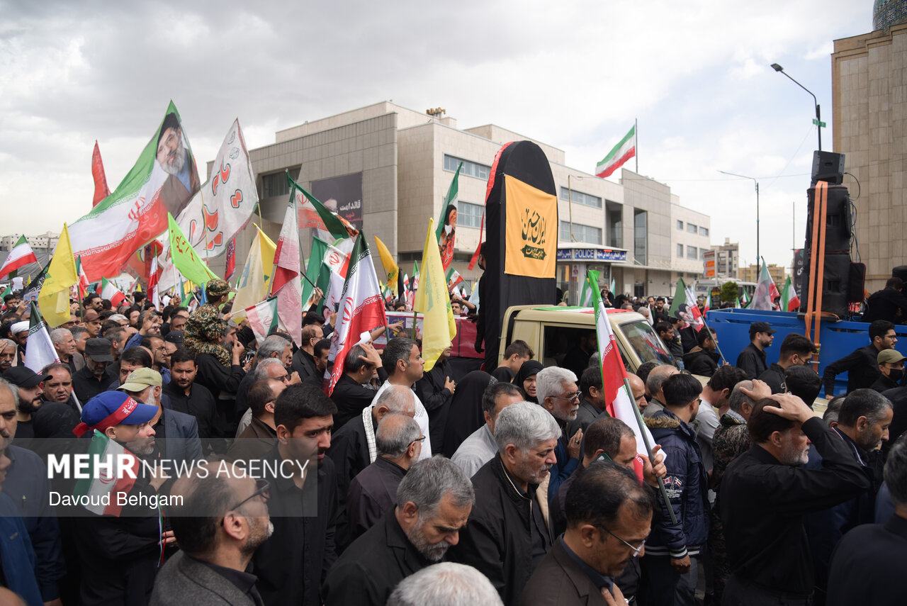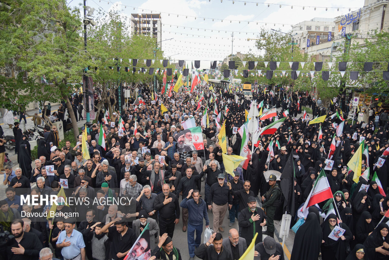 صبح امروز ۲۵ فروردین، اجتماع عزاداری صادقیون همراه با تشییع پیکر دو شهید مطهر جنگ تحمیلی امریکایی صهیونیستی، علی اکبر ساکت و یونس نظرزاده، از میدان شهدا تا حرم مطهر رضوی در میان سیل جمعیت عزاداران برگزار شد.