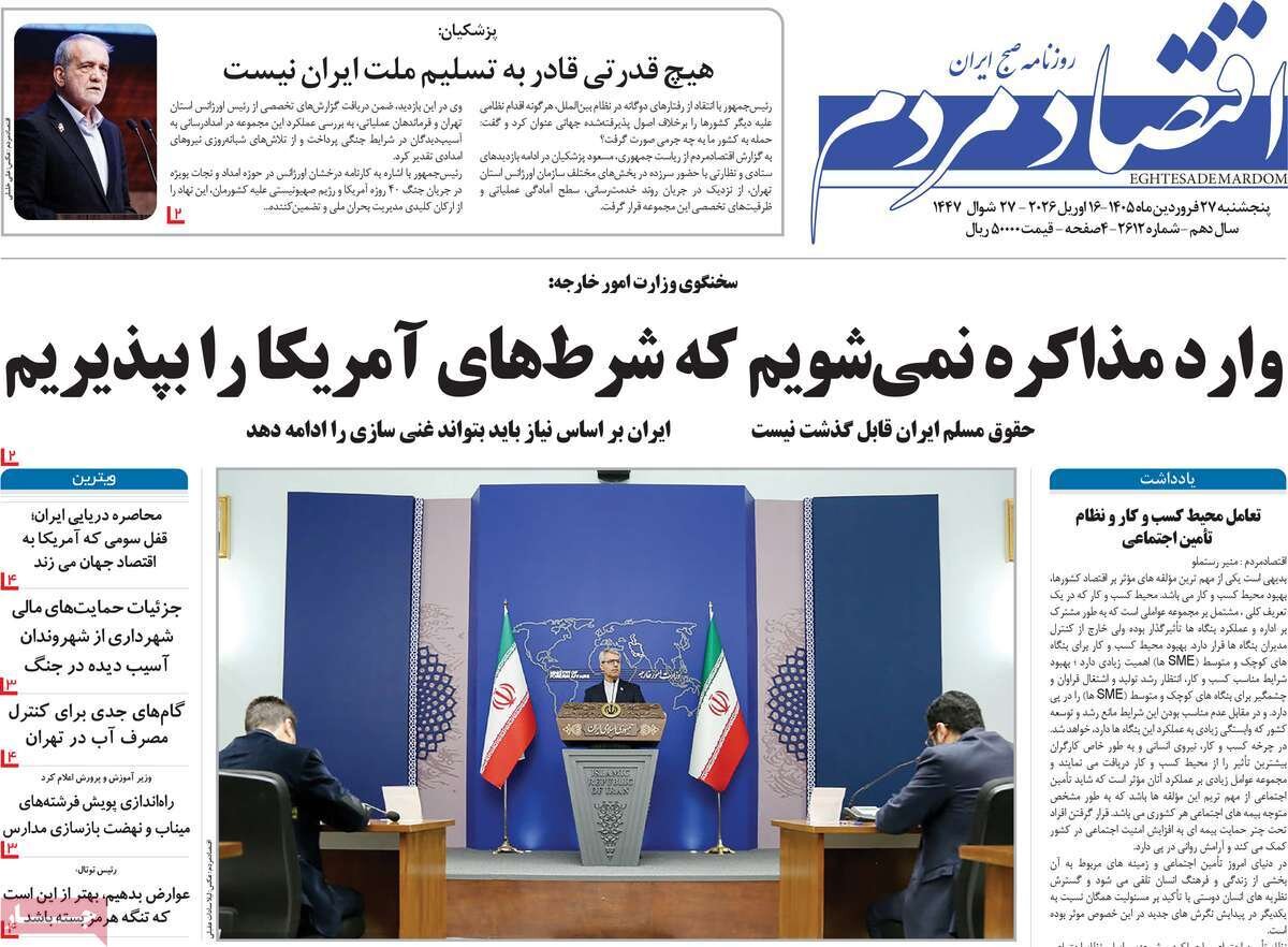 مجله مهر دکه روزنامه ۲۷ فروردین ۱۴۰۵ - ۱۰:۱۲ دریافت تصاویر روزنامههای اقتصادی پنجشنبه ۲۷ فروردین ۱۴۰۵ روزنامههای اقتصادی درباره آینده مذاکرات و تنگه هرمز نوشتند. برچسبها صفحه اول روزنامه های اقتصادی دکه روزنامه صفحه اول روزنامه ها مطالب مرتبط محسن رضایی: ترامپ میخواهد پلیس تنگه هرمز شود