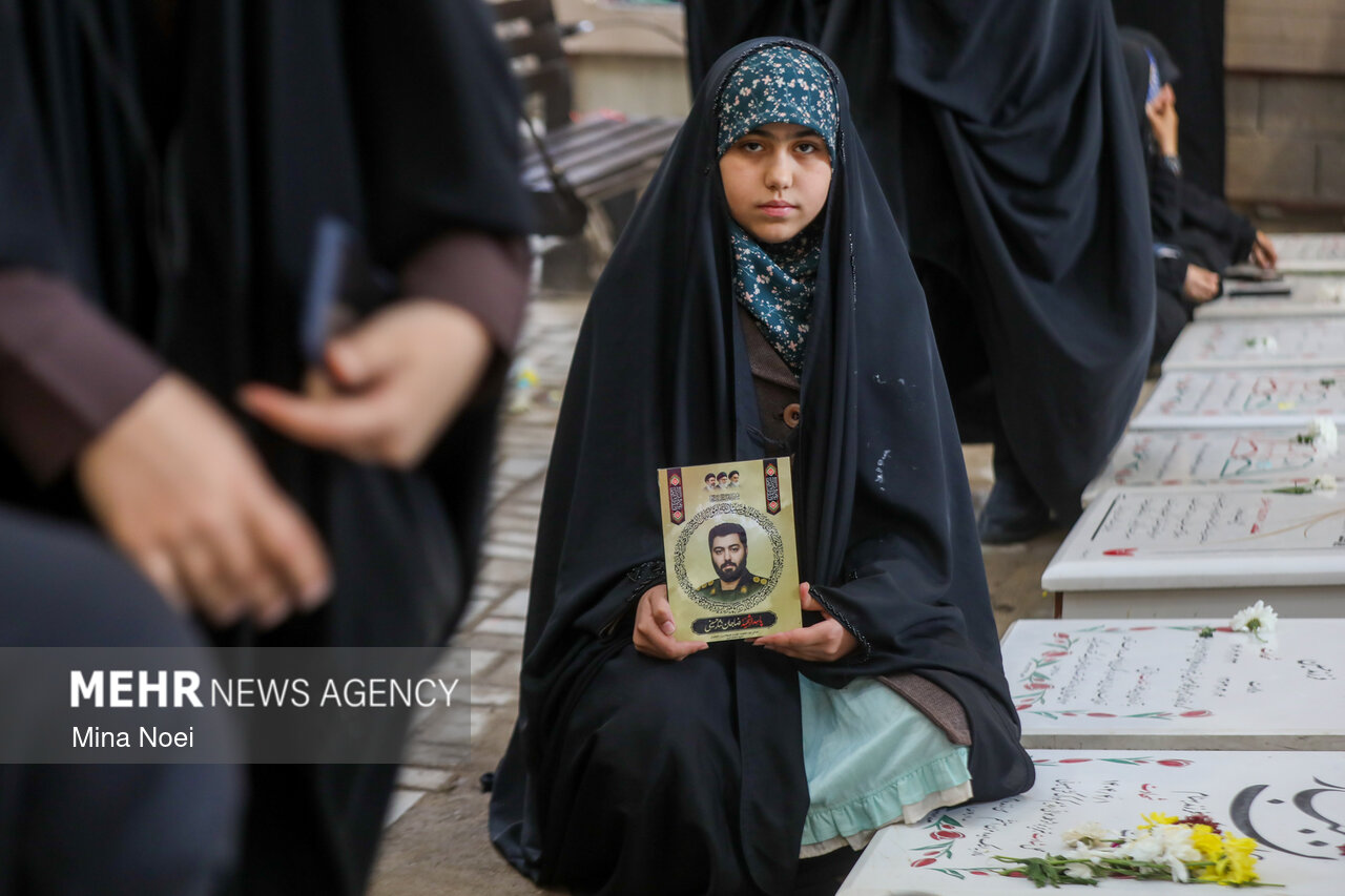 مراسم روز دختر و گرامیداشت شهدای جنگ رمضان با عنوان "دختران آسمانی میثاق" با حضور دختران شهید جنگ رمضان و جنگ ۱۲ روزه در گلزار شهدای وادی رحمت تبریز برگزار شد .